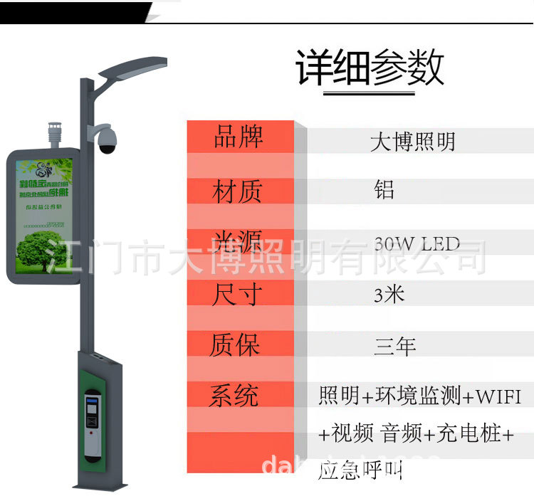 LED智慧路燈 定制小區廣場公園充電樁WIFI監控廣告一體化智能路燈