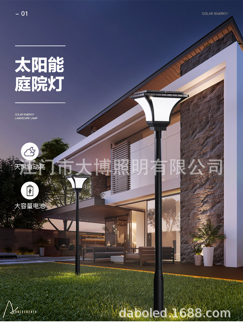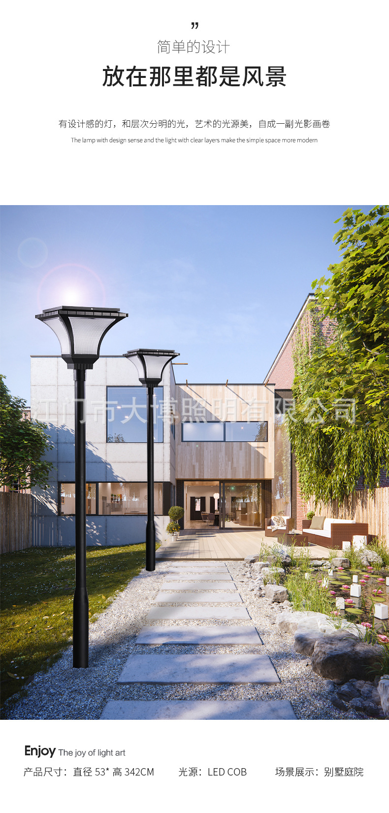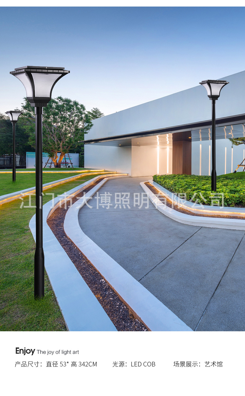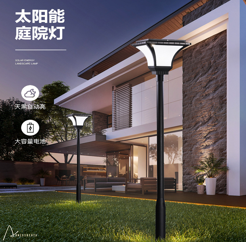 LED太陽能庭院燈公園道路照明簡約工業風路燈斜魔方3米鋁制廠家