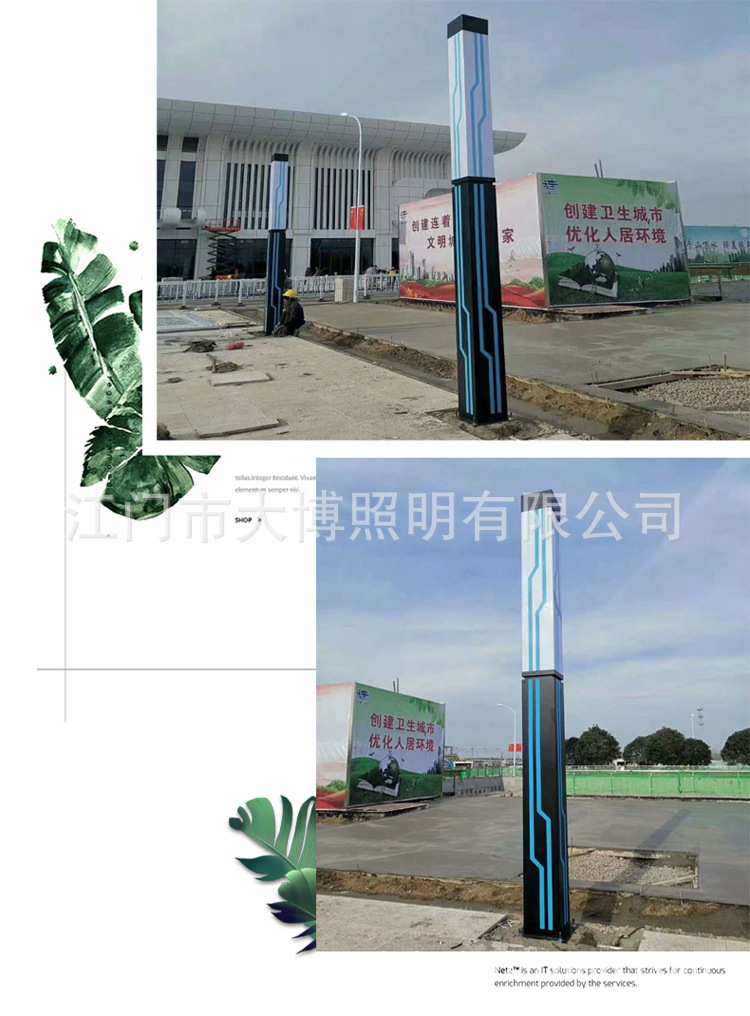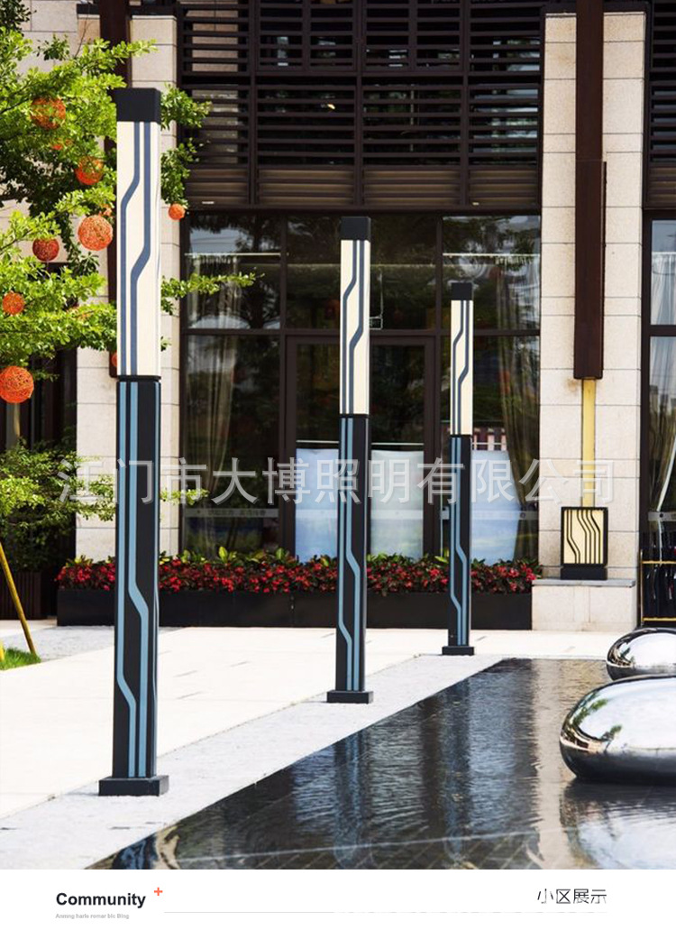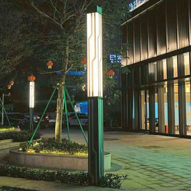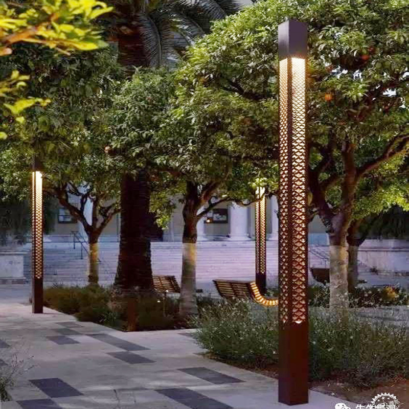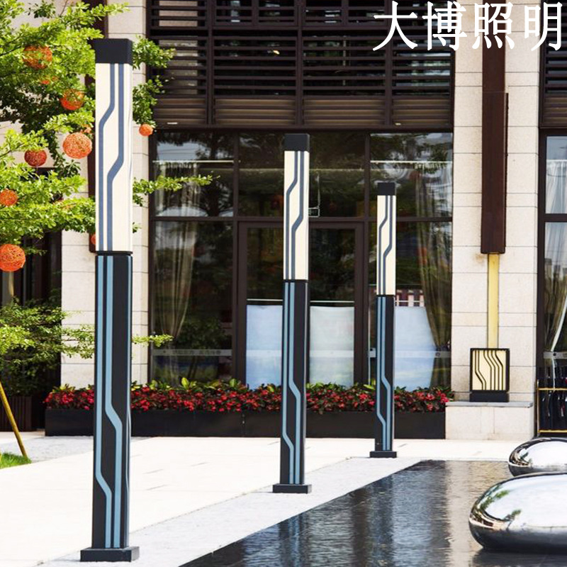 方形景觀燈豎條紋廣場照明戶外簡約景觀燈柱特色LED現代庭院燈
