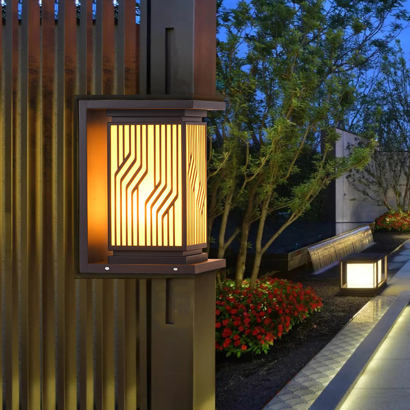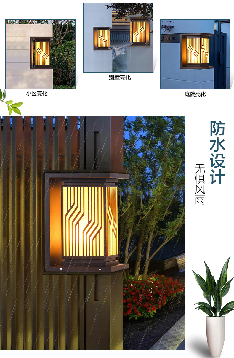 中式太陽能柱頭燈 新古典中字庭院燈戶外防水花園別墅圍墻柱子燈