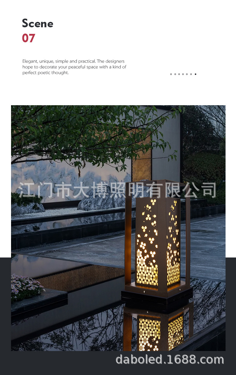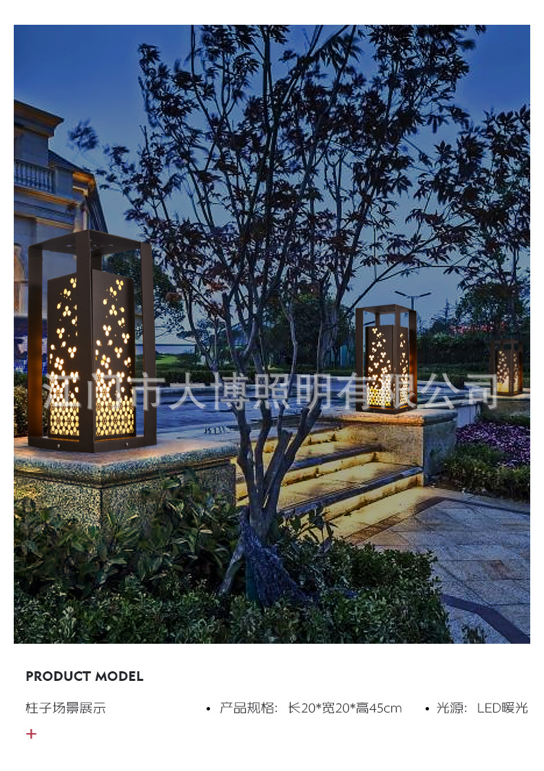 中式柱頭燈古典花韻落地式特色圍墻燈小區花園別墅LED草坪燈批發