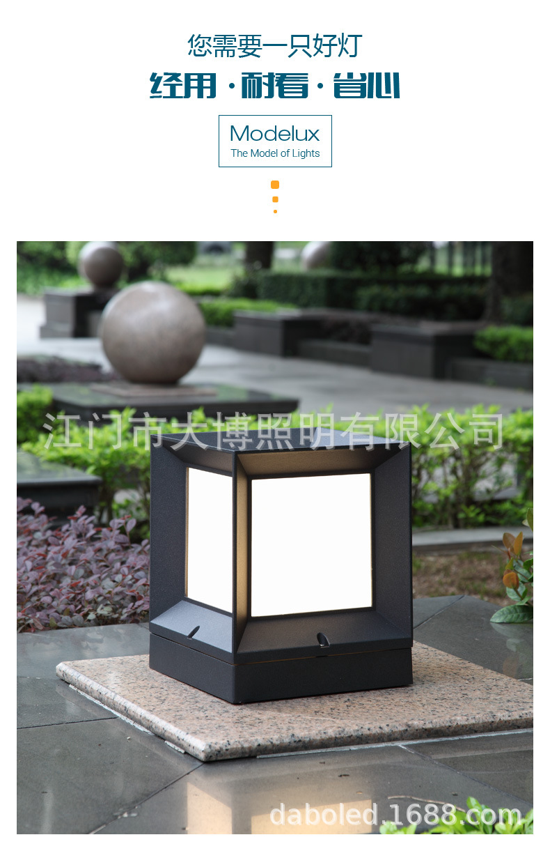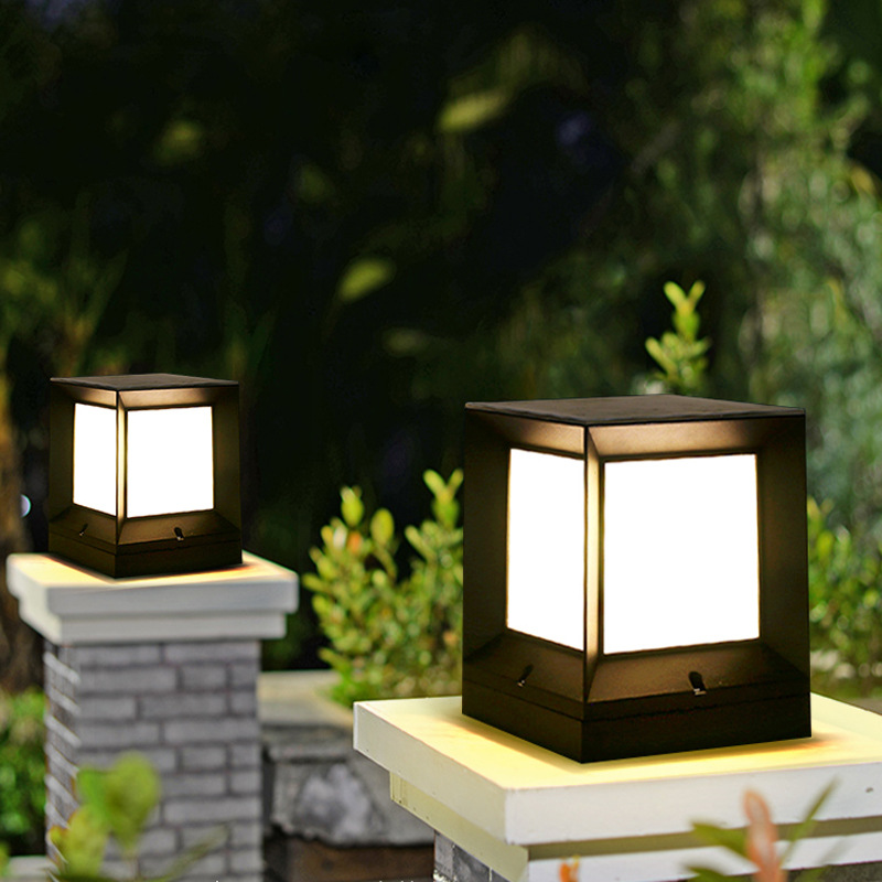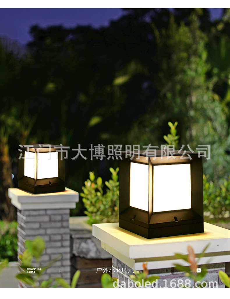 led壓鑄鋁方形柱頭燈太陽能市電小區公園圍墻庭院草坪燈批發